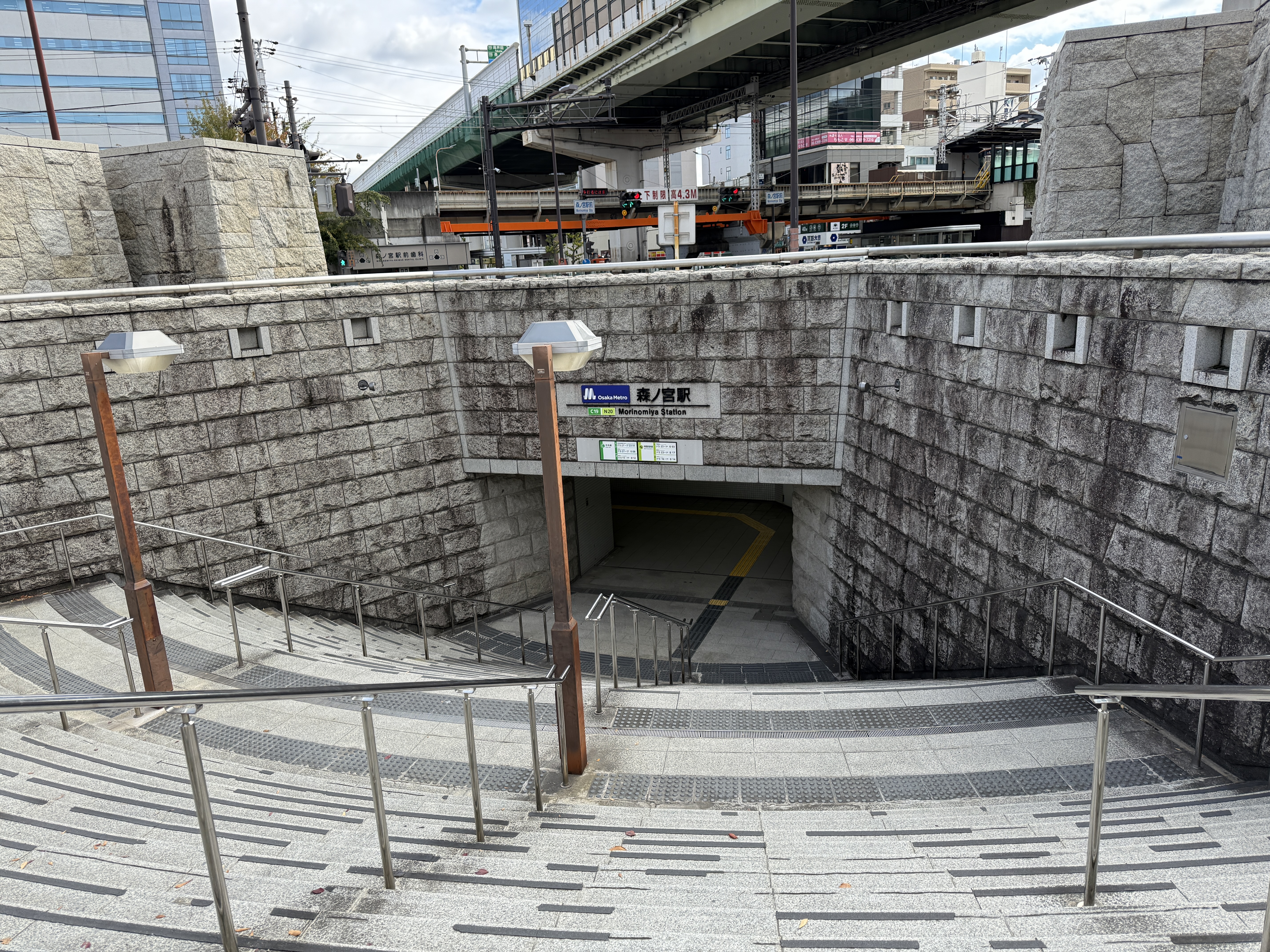 메트로 모리노미야역까지 걸어와서 탔어요.